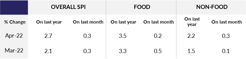 Period Covered: 01 – 07 April 2022 Shop Price annual inflation accelerated to 2.7% in April, up from 2.1% in March. This is above the 12- and 6-month average price increases of 0.4% and 1.5%, respectively. This marks the highest rate of inflation since September 2011. Food inflation accelerated to 3.5% in April, up from 3.3% in March. This is above the 12- and 6-month average price growth rates of 1.3% and 2.6%, respectively. This is the highest inflation rate since...Request free trial
