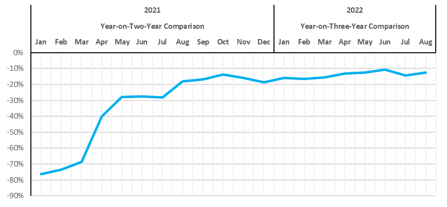 compared to their pre-pandemic (2019) levels. This means our 2022