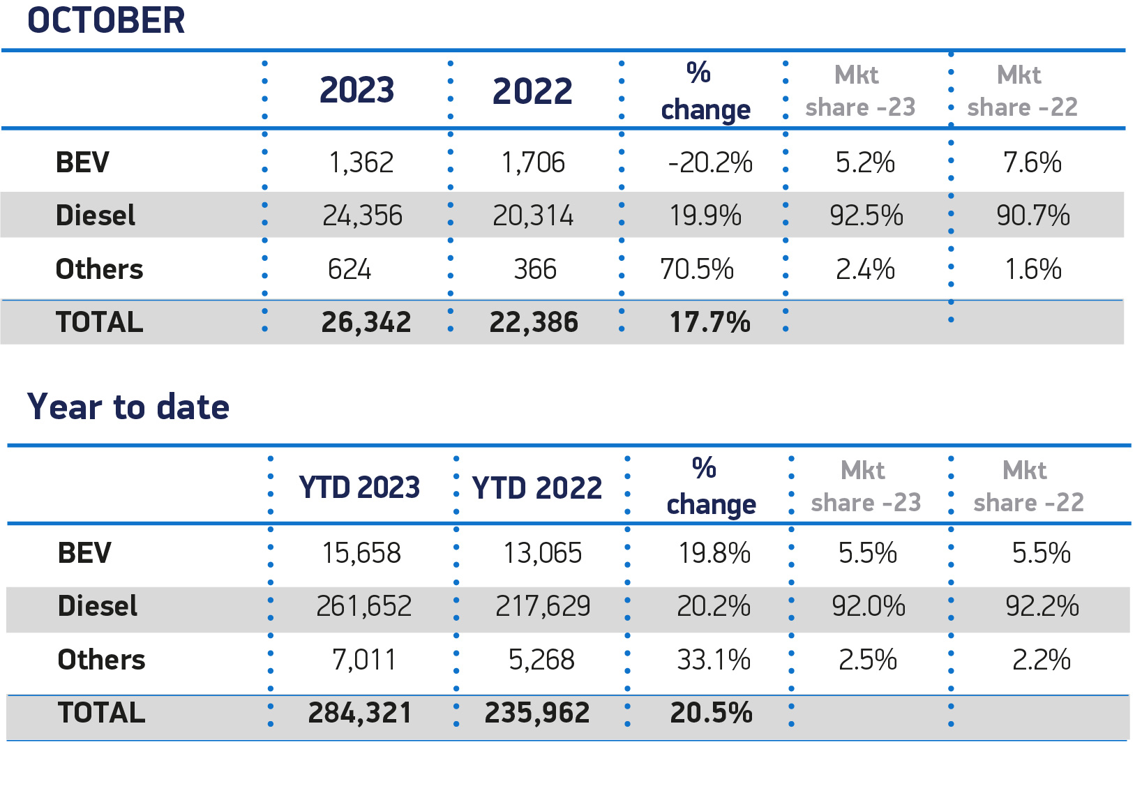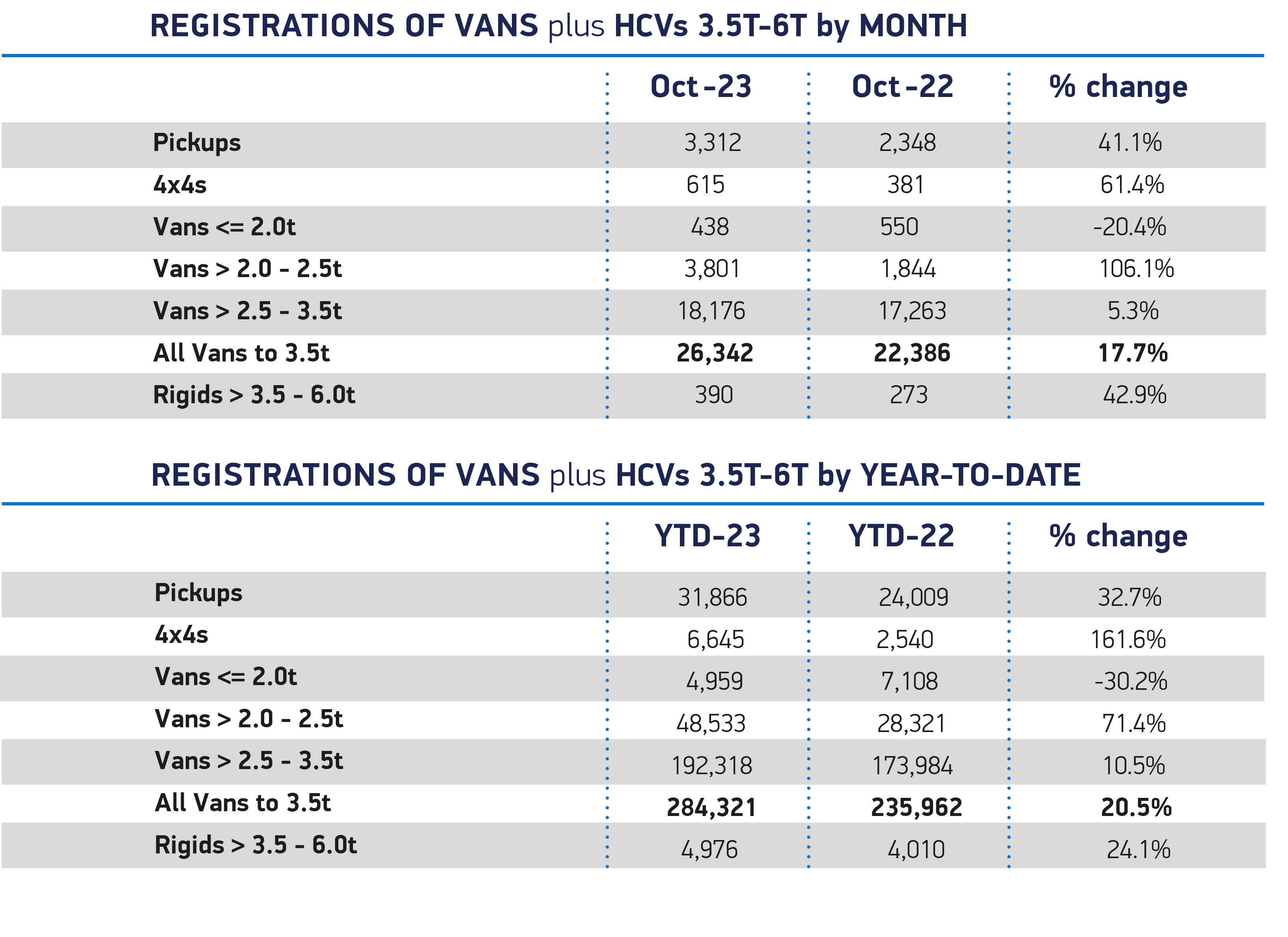 UK new light commercial vehicle market rises for 10th month in a row, up 17.7% to 26,342 units in October. Growth driven by doubling of demand for medium-sized vans, rising by 106.1%, while largest van models still most popular. Battery electric van registrations fall -20.2%, with van-suitable chargepoint rollout and driving licence derogation needed in time to support green growth. Britain’s new light commercial vehicle (LCV) registrations increased by...Request free trial