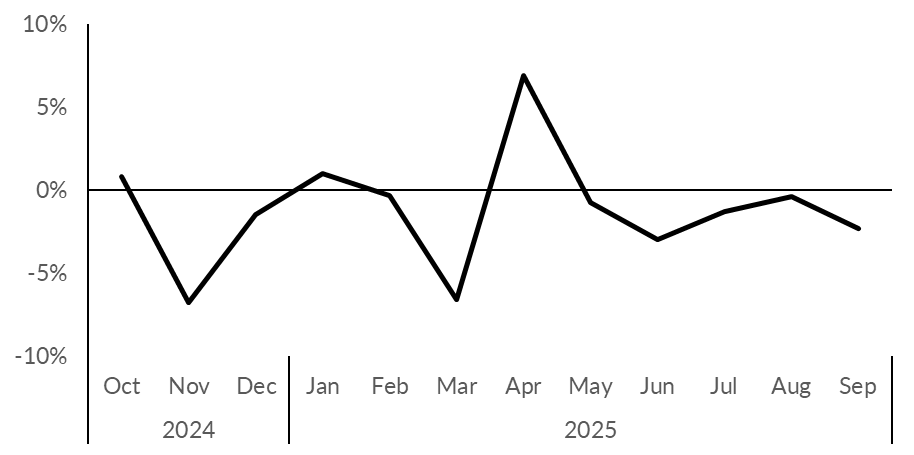 SRC-SENSORMATIC FOOTFALL MONITOR – SEPTEMBER 2025 Covering the five weeks 31 Aug - 04 Oct 2025 According to SRC-Sensormatic data: