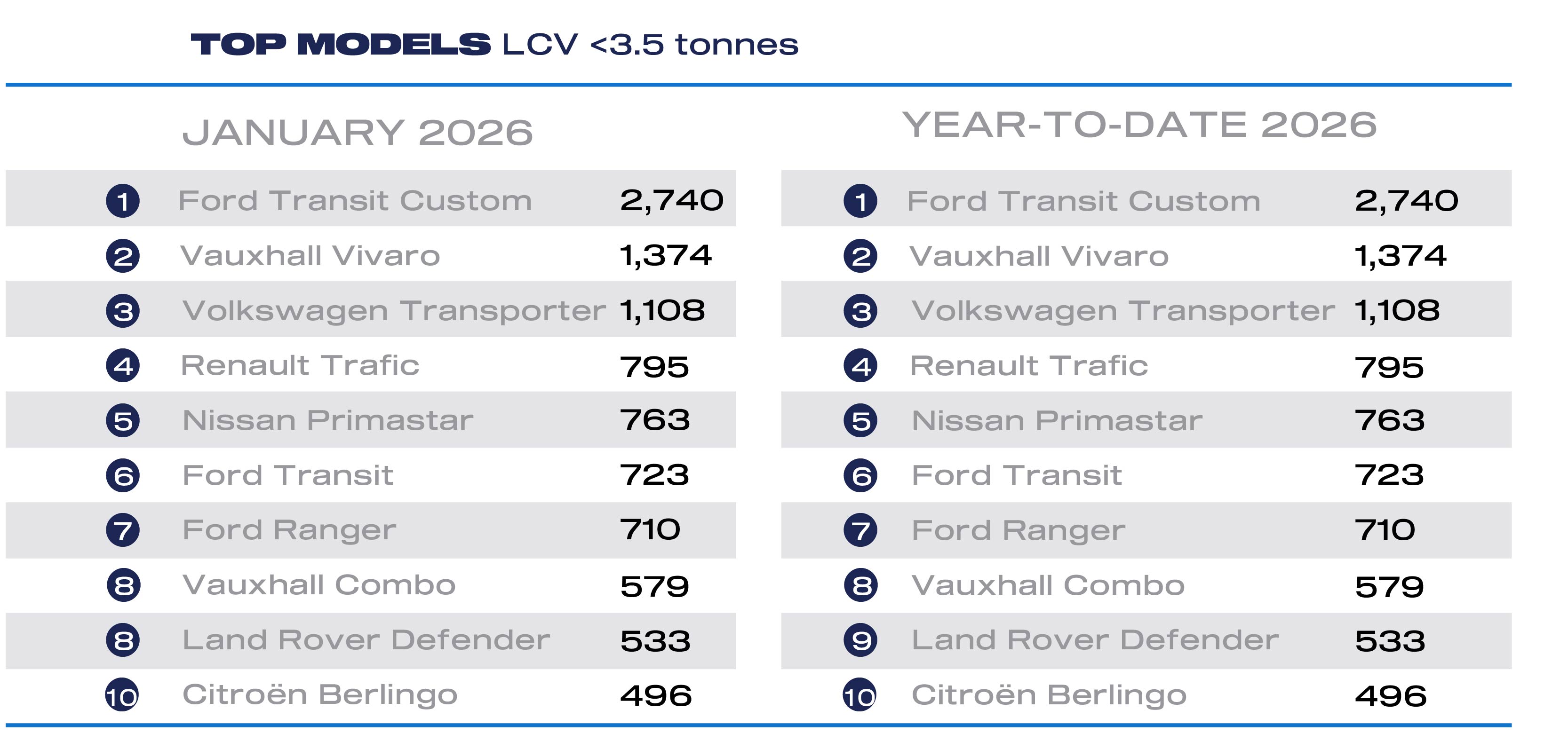 the first month of 2026 with 17,562 vans, pickups and 4x4s