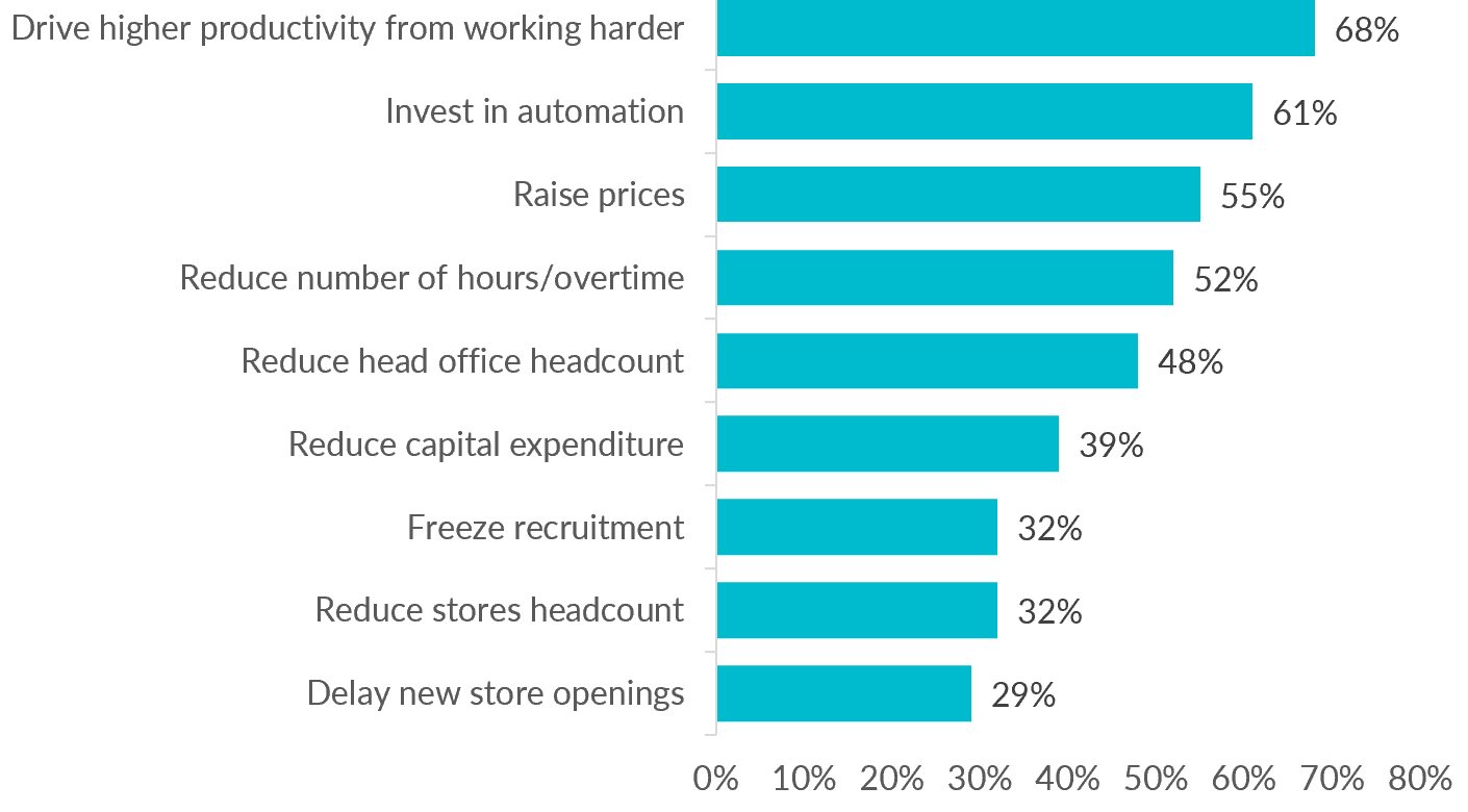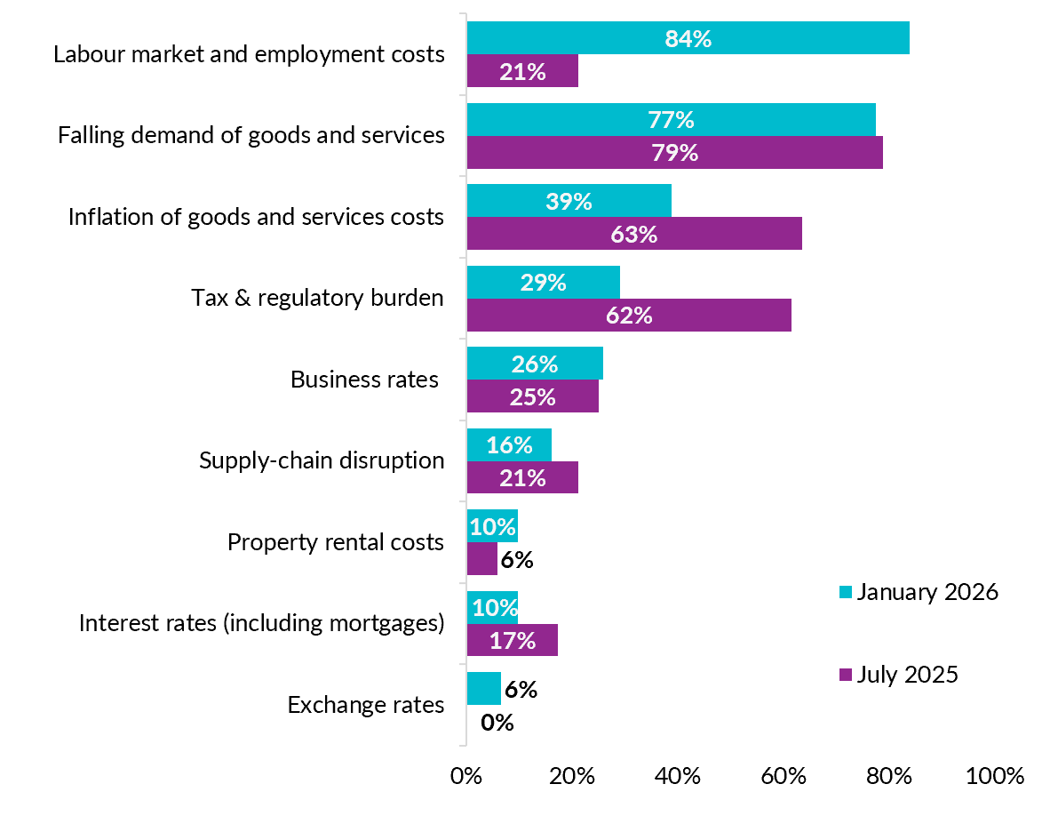 The BRC's latest survey of retail CFOs (Chief Financial Officers) and Finance Directors reveals a sharp rise in anxiety about labour costs over the next year. These concerns have shot up the agenda since the start of implementation of the Employment Rights Act, which became law in January. With weak wage growth, low consumer confidence, and rising business costs, CFO sentiment has deteriorated markedly in the past six months. More than two-thirds (69%) describe themselves as ‘Pessimistic' or ‘Very Pessimistic' (up from 56% in July 25), and only 14% ‘Optimistic' (11% in July 25). This downbeat outlook reflects unease about the 2025 Budget, which three-quarters (74%) of CFOs suggested would make it ‘harder to invest'. Labour market pressures dominate CFOs' worries for the year ahead: 84% ranked labour and employment costs in their top three concerns, up dramatically from just 21% last July. Other significant risks include falling demand (77%), rising input costs (39%), and the growing tax and regulatory burden (29%). These pressures build on an already challenging backdrop. Retail employment costs rose by £5bn in 2025 owing to increases to employer National Insurance Contributions and a higher National Living Wage. The BRC has calculated that the cost of employing a full-time entry-level worker rose by 10%, while for a part-time worker it rose by over 13%. Meanwhile, youth unemployment has risen to 15.9%, with 730,000 under-24s not able to find work. The result of higher employment costs is clear. A majority of CFOs (61%) plan to ‘reduce number of hours/overtime' of staff, and 45% would need to ‘freeze recruitment'. Jobs are likely at risk, with more than half (55%) planning to ‘reduce head office headcount' and 42% to ‘reduce stores headcount'. Meanwhile, retailers will work on making up for a smaller workforce by ‘driving higher productivity' (68%) and ‘investment in automation' (61%). This matters. Retail is the largest private-sector employer, providing significant numbers of part-time and entry-level opportunities. Yet the sector has shed 74,000 jobs in the past year and more than 250,000 over the last five. Now, as secondary legislation for the Employment Rights Act goes out for consultation, the stakes are rising further. The risk does not lie with the Act's aims, but in how it is implemented. Retailers fear that several clauses within the new Act – such as on guaranteed hours - could add significant cost and complexity for retailers, while reducing job flexibility and employment opportunities. If job flexibility is treated as job insecurity by default, employers will become more cautious – resulting in fewer entry-level roles, fewer part-time opportunities, and reduced hiring of those with limited experience or complex needs. Helen Dickinson, Chief Executive at the BRC, said: “The economy is expected to remain fragile, with weak wage growth, unemployment rising, and low consumer confidence, all pointing towards falling demand. At the same time, businesses face sharply higher costs, from rising input prices and wage bills to new burdens created by government policy. “We all want more high-quality, well-paid jobs. But retail has already lost 250,000 roles in the past five years, and youth unemployment is climbing fast. The Employment Rights Act is the biggest shakeup of employment rules in a generation, and how it is delivered will make or break job opportunities. Done well, the reforms can raise standards while supporting flexible and entry-level roles that are vital for people whose lives don't fit a fixed 9-5 pattern. If the Government fails to consider business needs on policies including guaranteed hours and union rights, they will add complexity and reduce flexibility, ultimately stripping away entry-level and part-time opportunities at precisely the moment the country needs them most.” ‘Rank the top three concerns for your business over the next 12 months' -ENDS- Survey respondents represented retailers with a combined UK turnover of over £60 billion. Question 1: Describe your sentiment towards trading conditions in the retail industry. For the next 12 months